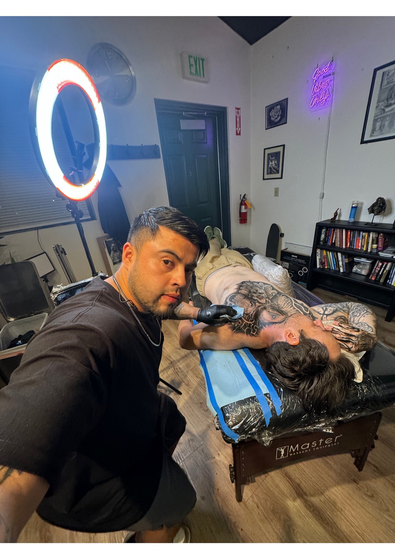 Our studio is professional, clean, welcoming, and creatively inspiring. Drug free environment and a safe space for any kind of personality. EVERYONE is welcome no matter your beliefs system or sex preference.
